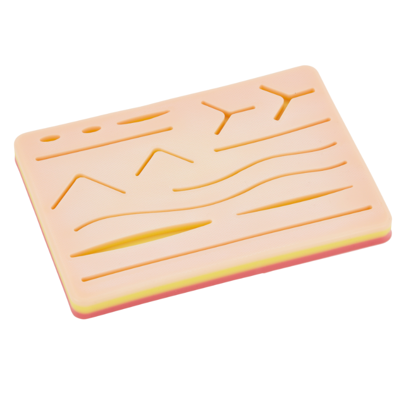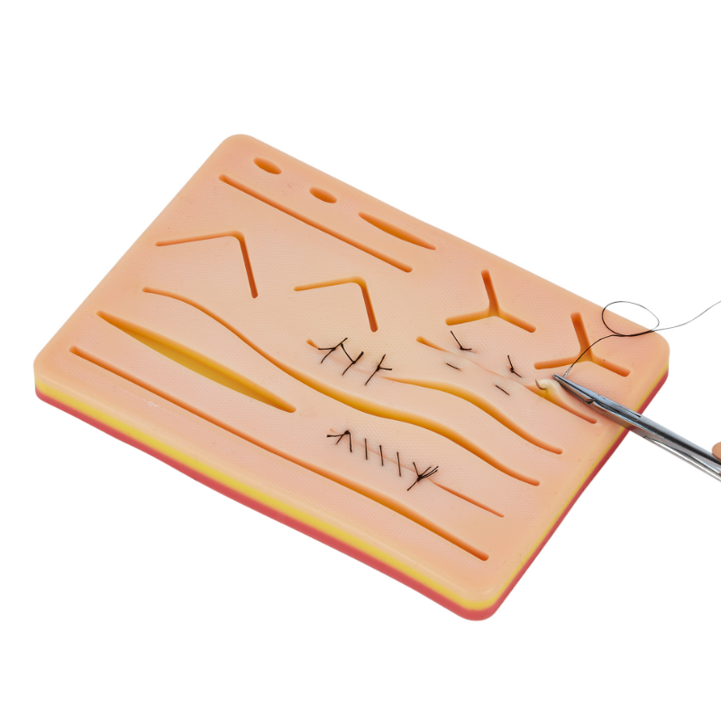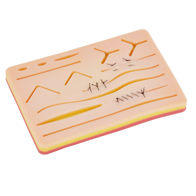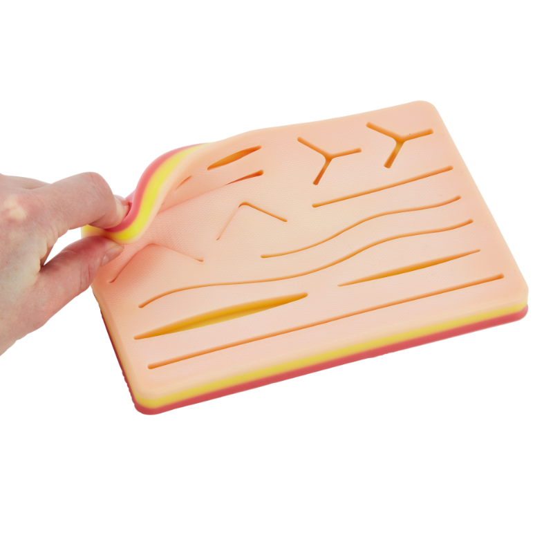Nuestra almohadilla de sutura duradera se compone de 3 capas de silicona no tóxicas que muestran la piel,